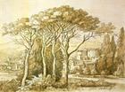 изображении ландшафта средней Италии с характерными кронами пиний он создал